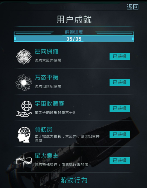 24. 星火意志! 我知道你好多人奔着这个来的,首先这是个彩蛋,本来不想说的,但是自己已经收集完全成就了就分享给你们吧。 条件:本文第七条 时间的秘密 如果你是第一次玩这个游戏直接触发时间的秘密你就可以同时获得时间的秘密和这个成就 如果你是多周目的话你就要触发完一次时间的秘密后不过关的情况下再触发一遍。(注意那个简报打开里面才有执行者的信) (问答机:梅开二度,没想到吧)获得了这个成就我才看懂看门人这波日志