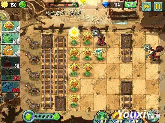 现在就教给玩家们植物大战僵尸2狂野西部植物危机第二天的通关阵法,。