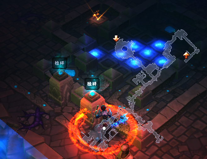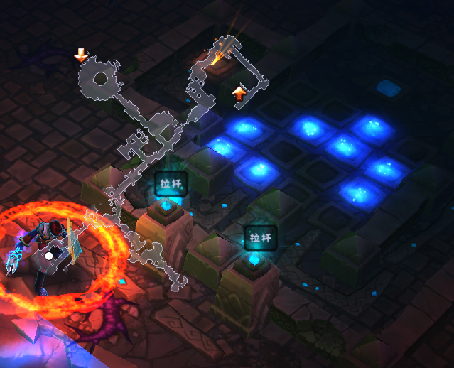 2:进入右边密室后,拉左边拉杆一下,可以进入下方的密室