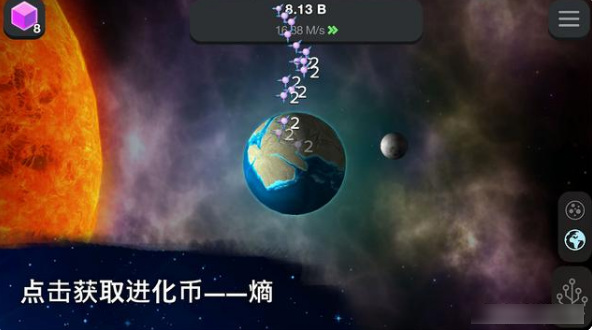 2.从细胞到奇点是一款放置挂机类游戏,用户只要点击屏幕就会产生一种名为“熵”的物质。利用“熵”就可以在科技生命之树上攀登,创造“生命”以及不断进化。