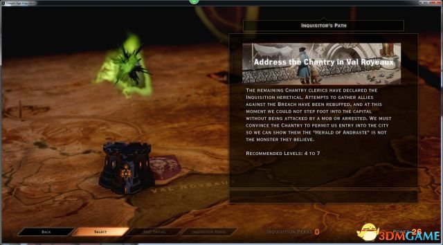 回到议事厅,接下来主角和卡珊德拉一行人必须前往位于奥莱斯帝国的Val Royeaux,让审判庭正面应对教廷的责难。