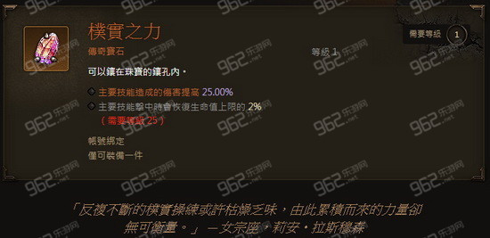 宝石刚获得时,等级是从 0 开始,并随着升级而提升力量。在 25 级之后,额外的特效将解锁。