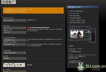 去注册一个steam的账号!这个应该瞎子都会的事! 注意邮箱需要写正确的!可能需要邮箱验证而且也是通过邮箱通知!